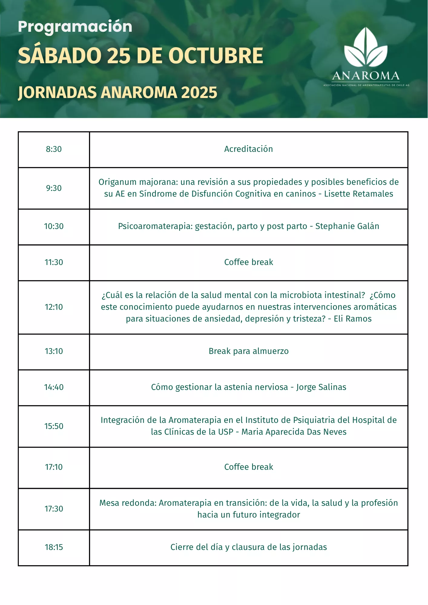 Las Jornadas Anaroma 2025 serán un espacio de encuentro entre profesionales de la salud, aromaterapeutas, investigadores y estudiantes interesados en integrar la aromaterapia en contextos clínicos, comunitarios y personales.